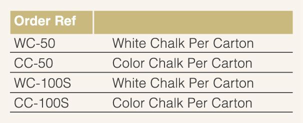 A special composition and special materials must necessarly result in a special type of chalk. Captain chalk adheres prefectly to the green / black board, without becoming indelible. here again you have a choice of white, or a range of very bright colors like Orange, Yellow, Red, Blue and Green supplied in weight of 400gram per box, 50 boxes x 400gram per carton white or assorted cylindrical stock. Also have small box, that is 12pcs in a small box, 100 boxes per carton.